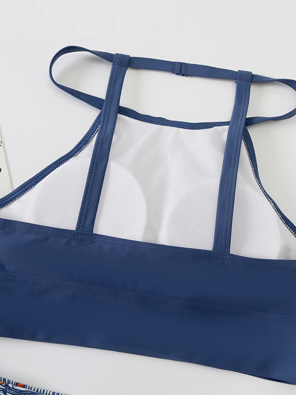 High-waist bikini set for women, featuring a high-neck top and two-piece design. Stylish and comfortable, this swimwear set is perfect for beach, pool, or summer vacation wear, offering a flattering fit for all body types.